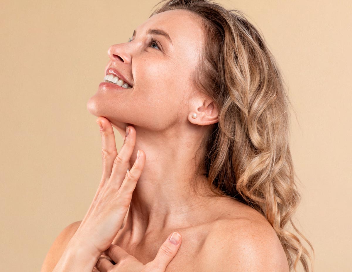 Sculpts the jawline and smooths neck bands for an elegant profile.